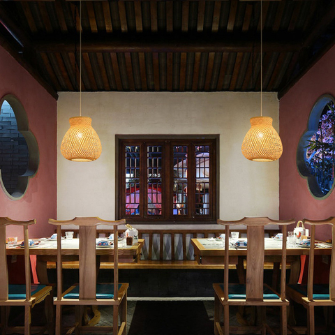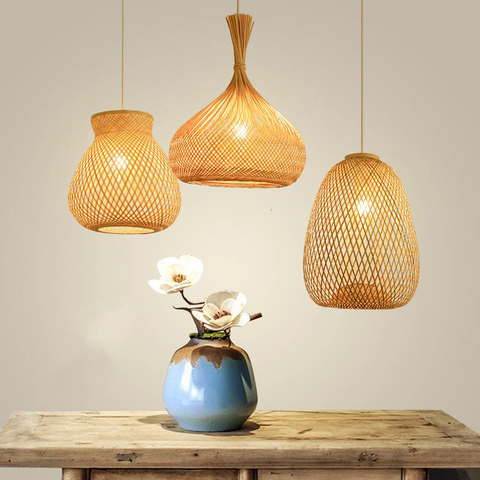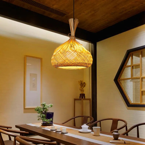 Lámpara colgante de bambú hecha a mano más vendida con pantalla decorativa para el hogar de diseño japonés y rústico