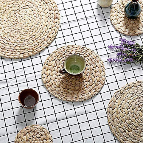 Manteles individuales tejidos redondos de jacinto de agua Manteles individuales tejidos de paja Manteles individuales tejidos